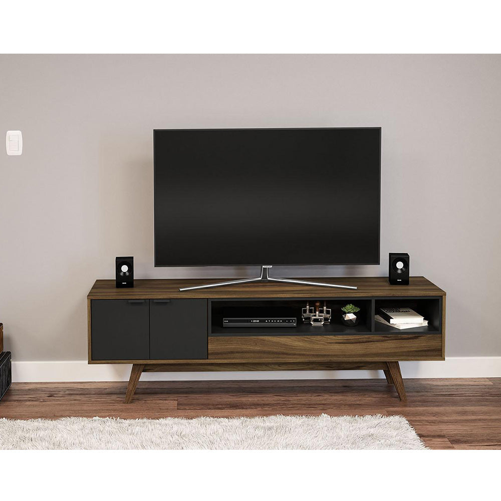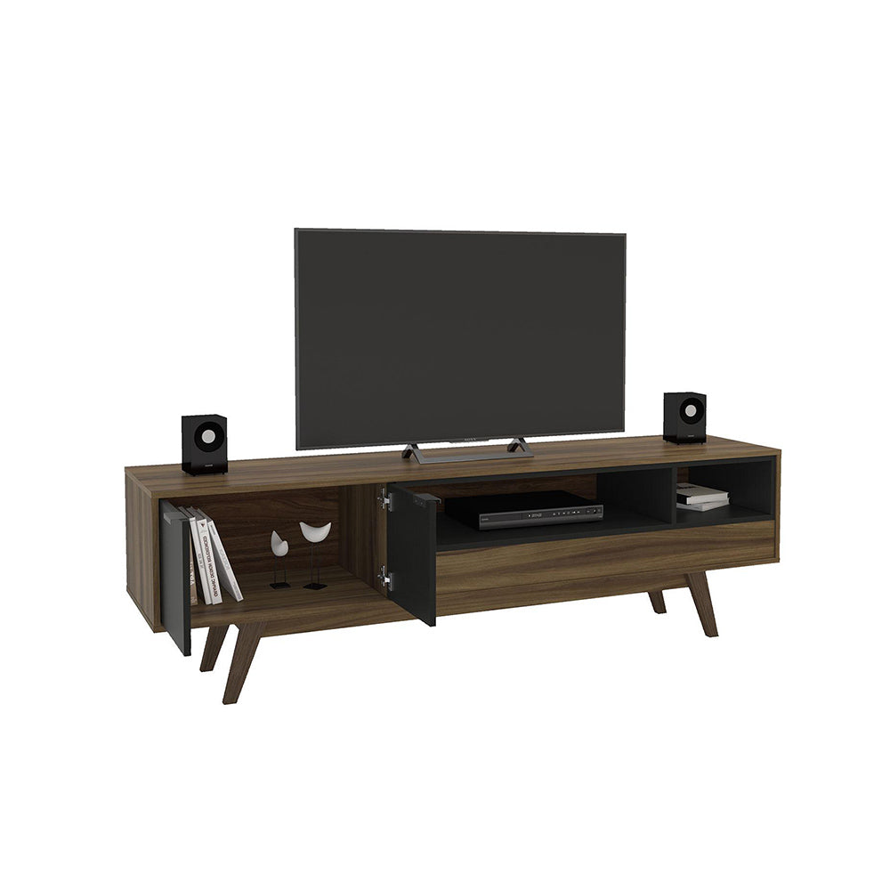 طاولة تلفزيون  65" بوصة مع ادراج وارفف لغرف المعيشة والمنزل لون بني مع اسود