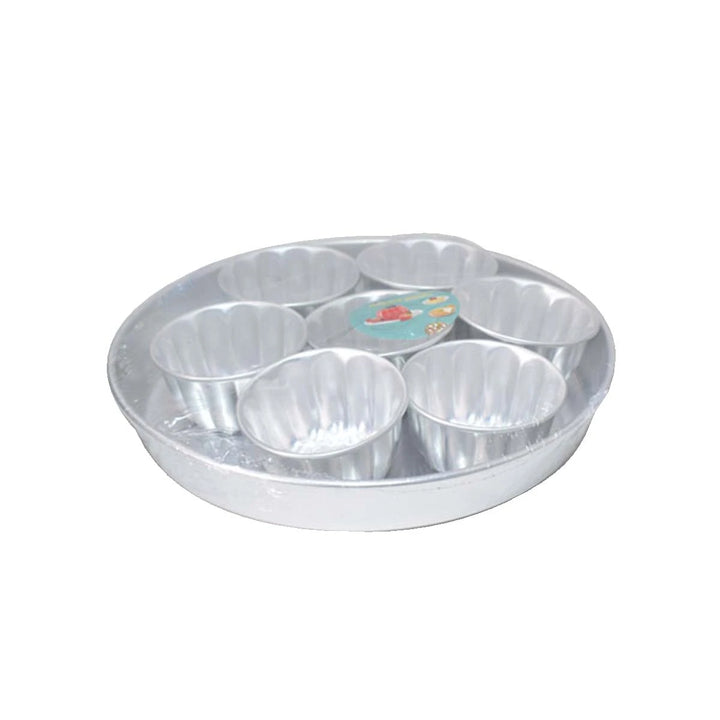 مجموعة قوالب المنيوم مع صينية تصلح لتشكيل وصفات الكريم كراميل والجيلي والعديد من الحلوى والمخبوزات سهل الاستخدام و التنظيف .