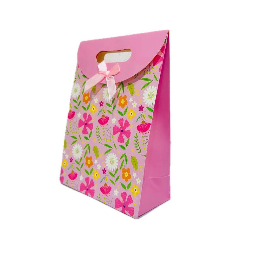 كيس هدايــا ورقـي باللـون الــوردي بتصميـم أنيـق وجــذاب 1 قطعـه