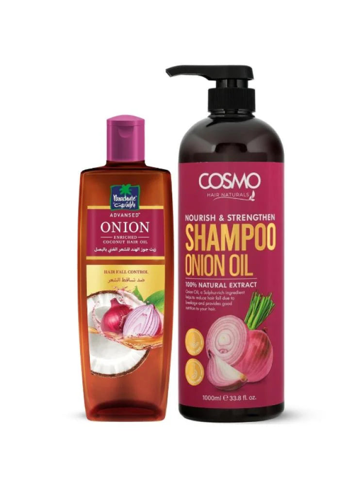 • مزيج قوي من زيت جوز الهند الغني بالبصل وشامبو بزيت البصل النقي يعملان معًا لتغذية فروة رأسك وتقوية بصيلات الشعر، مما يساعد على تقليل التساقط وتحفيز نمو شعر جديد أقوى وأكثر صحة.