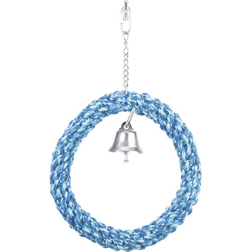 - 鸟类生活蓝色秋千绳带中间有铃铛