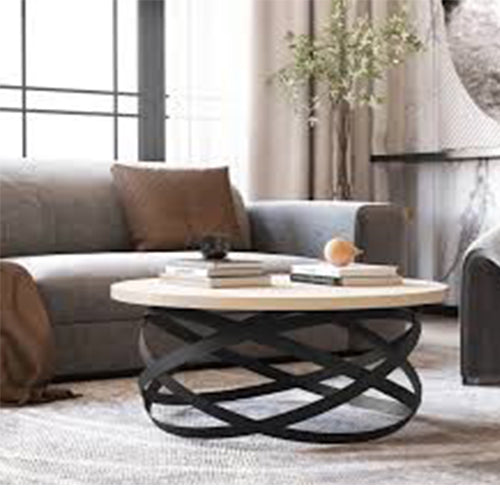 طاولة قهوة وسط دائرية لغرف المعيشة والمنزل لون اوف وايت/اسود